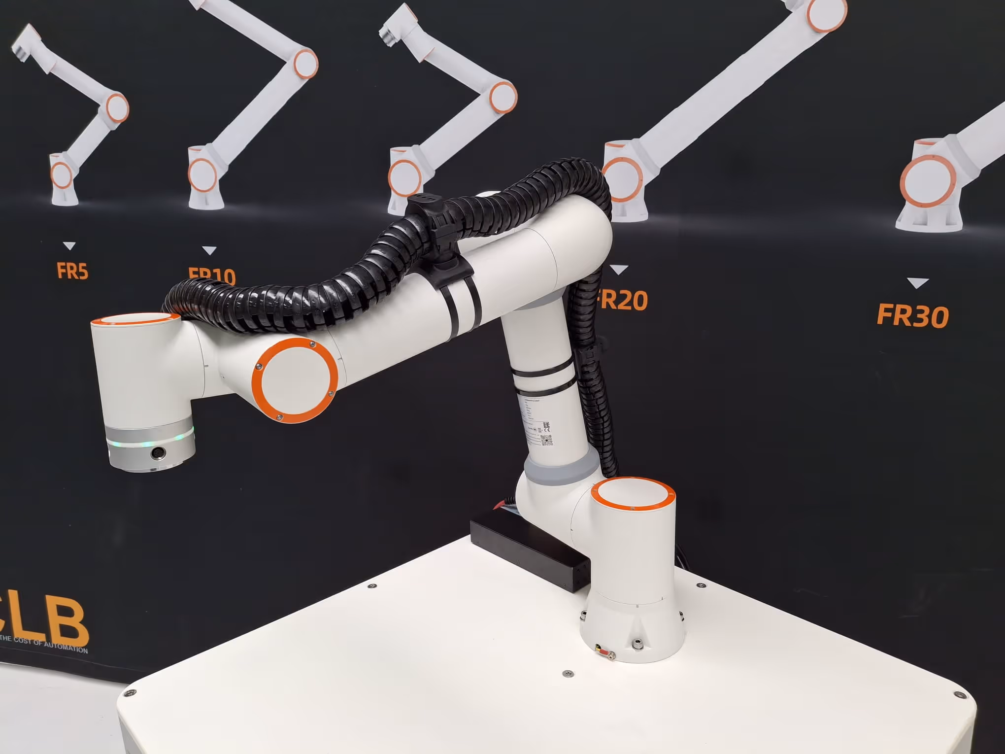 The included rounded mounts are shaped to fit the contour of the Fairino FR3 and FR5 cobot arms. They attach securely with a click system while still allowing full flexibility in placement, so additional slack can be left where necessary to avoid strain. This makes it easy to adapt the setup to different end-of-arm tooling and production environments. Whether used for simple signal lines or combined power and pneumatic feeds, the 3D drag chain keeps everything neatly in place, ensuring reliability and extending cable life.