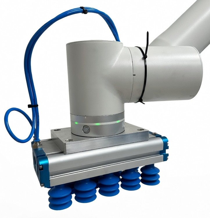 The gripper connects directly to an external compressed air supply, enabling fast integration and seamless operation within automated environments. Its lightweight and compact design ensures optimal performance without compromising the cobot’s payload capacity.